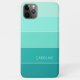 Marisco ligero contemporáneo, turquesa de color pastel, verde jade y rayas azul verde azulado. Con espacio para personalizar o personalización con un nombre, monograma o iniciales de su elección. Hermosa, moderna y fresca cubierta para la moda y amante del arte, amante de las caderas, amante del arte y amante del humor que quiere proteger su teléfono del polvo y la suciedad, el desgaste y el desgaste. Este diseño está disponible en los fundas Apple iPhone 6, 7 y 8 Plus, 10 o X, XR, XS, 11, 12, 13 Mini, 14 Plus y Pro Max. Muestra tu estilo, luce a la moda y te sientes elegante con un diseño único en un accesorio para equipos móviles de tu elección.
