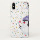 Divertido y festivo, este diseño de Penguin Folly presenta tres lindos pingüinos. Uno en un gorra púrpura patinando por un árbol verde, y dos pingüinos en esquí en el fondo, contra un fondo de luces navidades