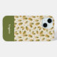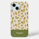 Una maleta telefónica con un patrón de Pistachios y puntos de polka verde sobre un fondo marrón claro y, en la parte inferior, un nombre de personalizable o texto de su elección sobre un fondo verde. Un regalo encantador para un amigo que ama las nueces.
