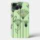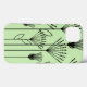 Este estuche de teléfono tiene un diseño moderno de plantas de mediados de siglo, hechas de líneas, círculos, triángulos, rectángulos y cuadrados de negro sobre un fondo verde.