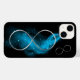 Elegante signo de infinito minimalista plateado con turquesa sobre un fondo negro - funda para iPhone 14.