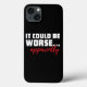 Podría ser peor... aparentemente. Una divertida cita sarcástica estuche para iPhone con un diseño audaz y moderno. Es un gran regalo tanto para los cínicos como para los pesimistas. Estos son tiempos extraños en los que vivimos. ¡Probablemente es mejor no detenerse en cómo podría volverse más extraño!