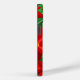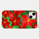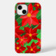 Este estuche de teléfono tiene un diseño de Navidades de poinsettias diseminadas por un campo de rayas verdes.