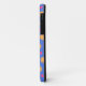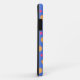 Manchas amarillas y rosas sobre un fondo azul, para una divertida caja de teléfono de chicas.