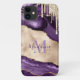 Impresionante, glamuroso, elegante, elegante estuche de teléfono personalizado, con un diseño de moda de agate morado y dorado, con efecto de goteo de crema de champán. Personalizar con su propio nombre inicial.