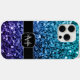 El purpurina azul Aqua Ombre faux enciende el Funda Monograma iPhone 15. Personalice el estuche para iPhone Sparkly con su nombre y su nombre inicial. Los hermosos purpurinas brillantes, glamorosos y oscuros, brillantes y brillantes. ¡Foto de chispas cian y azul oscuro no es purpurina real!