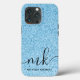 Funda De Case-Mate Para iPhone Purpurina azul claro Personalizado Bokeh Monograma