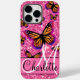 Fiesta divertido vibración, mariposas naranja y purpurina brillante rosa -Funda-Mate iPhone 14 Pro Max Funda - el texto es personalizable y el diseño es transferible-