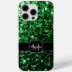 Funda De Case-Mate Para iPhone Purpurina de imitación verde oscuro chispa Monogra
