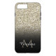 Purpurina de oro sobre fondo negro, chica, estuche de teléfono móvil puede ser personalizado con tu nombre y monograma.