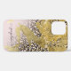 "Relieve metalizado Purpurina dorado rosado con Moda Leopard Imprimir guión nombre iPhone 12 Funda." Elegante animal leopardo imprimir glam para una chica! El Relieve metalizado dorado se extiende con brillantes suaves purpurinas sobre un simple fondo blanco. Derechos de autor de diseño, Audrey Jeanne Roberts.