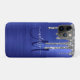Añade un toque de brillo a tu teléfono móvil con este elegante estuche de teléfono personalizado. Esta plantilla de diseño de moda presenta un moderno monograma de escritura azul marino con un nombre en gris sobre un fondo de textura metálica color azul cobalto con un borde superior de purpurina de goteo de plata falsa. Un regalo único para el cumpleaños, las vacaciones y cualquier ocasión especial. Diseñado sólo para ti por Extreme Tees!