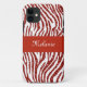 Funda De Case-Mate Para iPhone Purpurina rojo Zebra Monograma iPhone