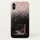 Funda De Case-Mate Para iPhone Purpurina rosado en Monograma Negro Nombre