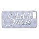 El estuche de teléfono Let It Snow Winter Snowflake tiene un patrón de copo de nieve en un fondo azul.