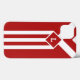 El elegante patrón geométrico presenta rayas blancas en negrita sobre un fondo rojo. Tres chevrones rojos y blancos alternantes terminan en un diamante rojo delineado con blanco. Parece una medalla estilizada colgando de una cinta. El diamante contiene un monograma de personalizable. Tres franjas blancas se extienden desde el lado opuesto del diamante hasta el borde del diseño. Los tercios exteriores del patrón son rojos. Imagen creada digitalmente. Copyright © 2014 Claire E. Skinner. Todos Los Derechos Reservados.