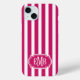 Funda De Case-Mate Para iPhone Rayas Monogramadas de Frambuesa y Blanco