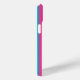 Personaliza esta funda para iPhone 15 plus a rayas rosa caliente y turquesa con tus iniciales en una fuente moderna mayúscula en blanco sobre rosa caliente. ¡Es tan moderna y trendy, pero también clásica y elegante!