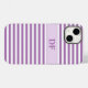 Funda De Case-Mate Para iPhone Rayas moradas/blancas monogramadas