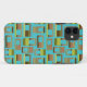 Este estuche de iphone presenta un diseño moderno de mediados de siglo de rectángulos redondeados en tonos verdes y marrones con agujeros en un campo de turquesa. Si te gusta el diseño pero prefieres colores diferentes, envíame un mensaje.