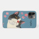 Charming illustration of a relaxed black and white cat lying peacefully among pink flowers on a blue background. This cute and artistic iPhone case combines calm colors and playful details, offering both personality and reliable phone protection.