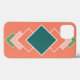 This phone case has a Bauhaus design of seven overlapping diamonds running vertically along the item in retro colors of blue, pink, and green.