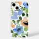 Funda De Case-Mate Para iPhone Resumen Azul floral, Rubor, acuarela verde
