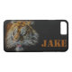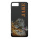 Cara de tigre con imagen en oro, negro y blanco en neón de arte en elegante estuche para iPhone. Se pueden personalizar el color y el estilo del nombre.