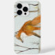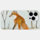 Una diminuta pintura acuarela de un zorro rojo en una cacería en invierno adorna este estuche de teléfono.