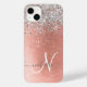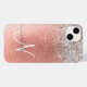 Personaliza fácilmente este diseño de estuche de teléfono de moda de moda con un purpurina brillante de bonito plateado sobre un fondo metálico rosa de color dorado.