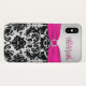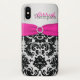 Rosas fuertes modernas personalizadas, negro, y caso de plata del iPhone X de There™ de la casamata del damasco apenas con IMPRESO EN la broche de la cinta y de la joya.