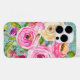 Aqua purpurina es el telón de fondo perfecto para este rosa femenino de teléfono con estampado floral en tonos rosa, melocotón y crema.