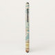Añade tu nombre a este elegante estuche de teléfono con un patrón de rosas de flores rosadas con fondo de damasco azul y beige.