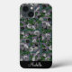 Este estuche de teléfono tiene un elegante patrón de rosas florales en rosas blancos y negros en un enrejado de jardín con fondo violeta. Puede hacer que el patrón de este funda sea más grande o más pequeño si lo desea. Personalice este estuche de teléfono con su nombre en la parte inferior o elimine el nombre y el cuadrado de un funda de patrones limpio. Un elegante estuche de teléfono con diseño floral que hace un gran regalo o un regalo para ti mismo.