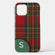 Bonito iPhone e hecho en el colorido patrón tradicional escocés Royal Stewart tartan. Un disco verde, en la esquina inferior izquierda, tiene un monograma blanco de una sola letra listo para personalizar.