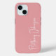 Este funda monogramado de iphone rosa 15 es moderno y clásico. Incluye tu nombre en un fabuloso y moderno tipo de letra en blanco. Es simple, mínimo y profesional.