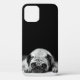 Fotografía en blanco y negro de un pequeño cerdo muy adorable con orejas aterciopeladas y ojos marrones conmovedores. Un gran regalo para ti o para el amante del pug en tu vida.