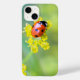 cierre de una mariquita sobre flores amarillas pequeñas - belleza de verano