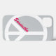 Funda de color plateado con un gran signo de paz blanco y un nombre personalizado de rosa claro.