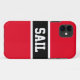 Este diseño deportivo presenta una franja central horizontal negra, reseñada en pinstripes blancas centradas entre rayas rojas brillantes adyacentes. El texto deportivo blanco dentro de la franja central actualmente deletrea "SAIL" y puede ser personalizado.