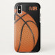 Caso para hombre del smartphone del monograma del tema del baloncesto con imagen de un gráfico del baloncesto en una presentación moderna incluyendo iniciales para hombre del nombre del monograma en un estilo del grunge que usted puede modificar para requisitos particulares en línea.