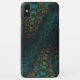 Un estuche para iPhone de arte fractal y de fantasía en azul oscuro y verde con una textura de tentáculo de pulpo.