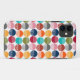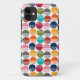 Este estuche de teléfono tiene un diseño moderno de mediados de siglo de semicírculos rayados y de semicírculos sólidos unidos en un campo de blanco.