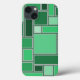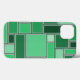 Este estuche de teléfono tiene un diseño Bauhaus de rectángulos formados con líneas grises llenas de diferentes tonos de verde.
