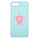 Funda De Case-Mate Para iPhone Tortuga de mar rosada con monograma + Quatrefoil