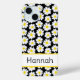This iphone 15 phone case is so cute and girly! It's modern trendy daisy floral pattern with multi-sized white and yellow daisies on a black background and your name in a fun trendy font will go with everything! It will look fabulous on your phone!
