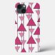 Este estuche de teléfono tiene un diseño Art Deco de triángulos colgados en líneas en dos tonos rosas.