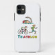 El diseño de Triathlon muestra competidores de natación, correr y ciclismo con la palabra Triathlon en la parte inferior. Un gráfico divertido para la gente a la que le gusta un duro desafío físico.