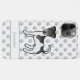 El original ilustracion personalizado de Destei de un perrito tricolor de raza Smooth Fox Terrier. También hay un área de texto personalizable para un nombre. El fondo tiene un patrón de huellas de perros grises.