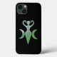 Una bella diosa espiral entre dos lunas de media luna, creando una diosa triple. Parece que está hecha de vidrio esmerilado en tonos verdes y muros tribales morados. La Diosa Triple representa los tres ciclos de la feminidad: La Dama, la Madre y el Corona.